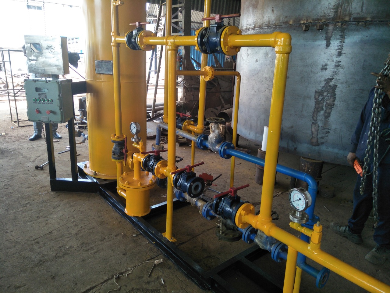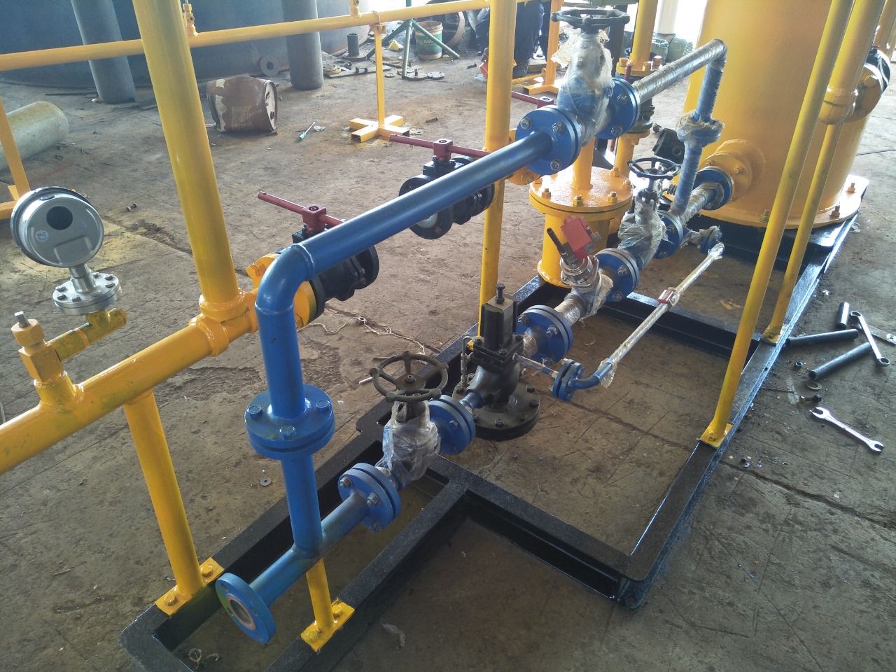 We also provide Pressure relief valve (PRV), pressure gauges integrated with pressure switches and temperature indicators on the chlorine outlet, for enhanced safety. Standard header for liquid chlorine Filter for liquid.
