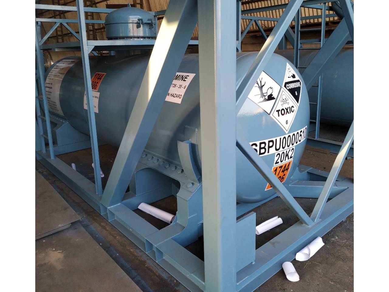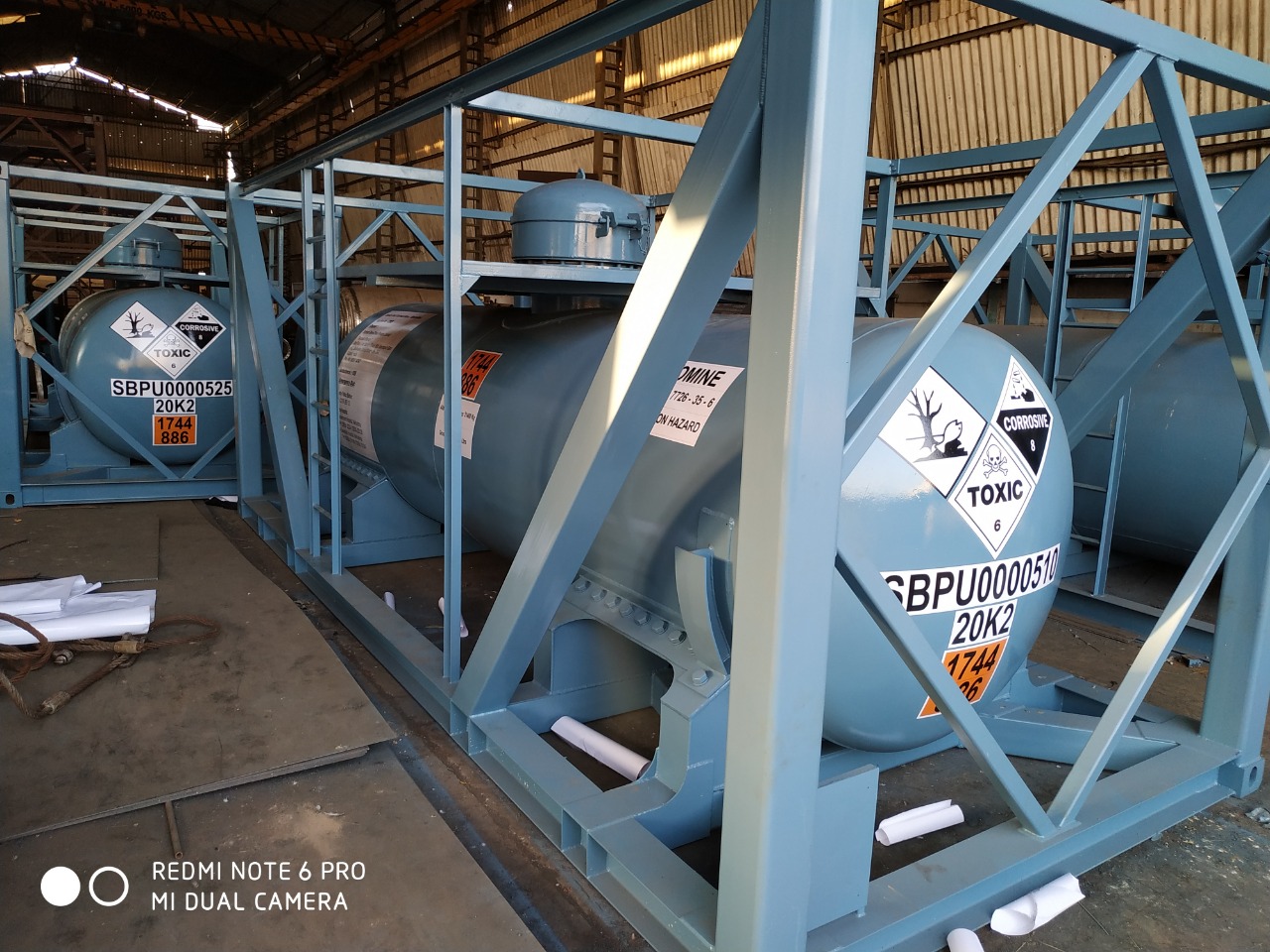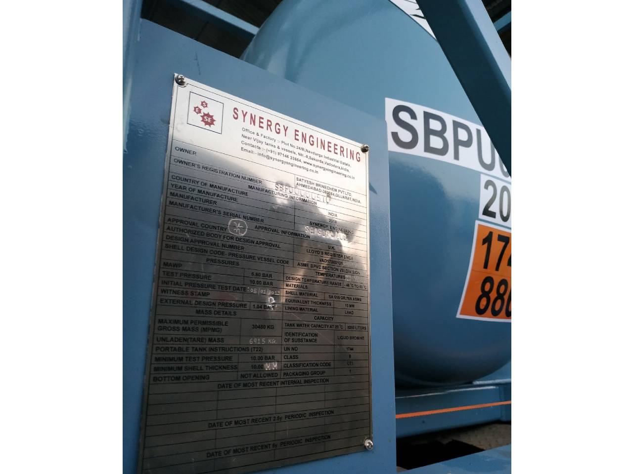 Liquid bromine is an extremely corrosive chemical with a specific gravity of 3.12. Homogeneous lead bonding to BS CP 3003: Part 3 for pressurised transport tanks with full vacuum design, ISO 1496 Class 3 certified frame mount are some features of Synergy Engineering’s ISO containers.Flawless lead lining is the key to reliable transportation of liquid bromine.
